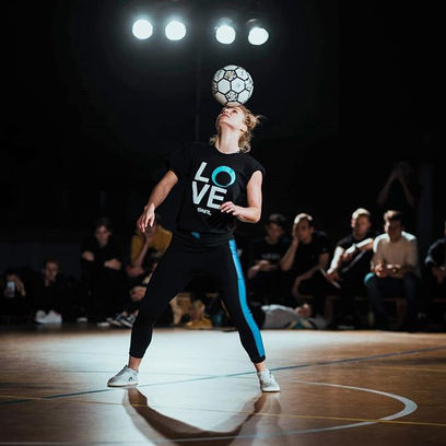 aguska mnich freestyling all around the world showing her football skills to all the nations